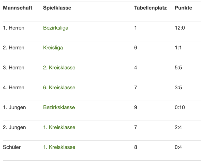 Mannschaft Spielklasse Tabellenplatz Punkte