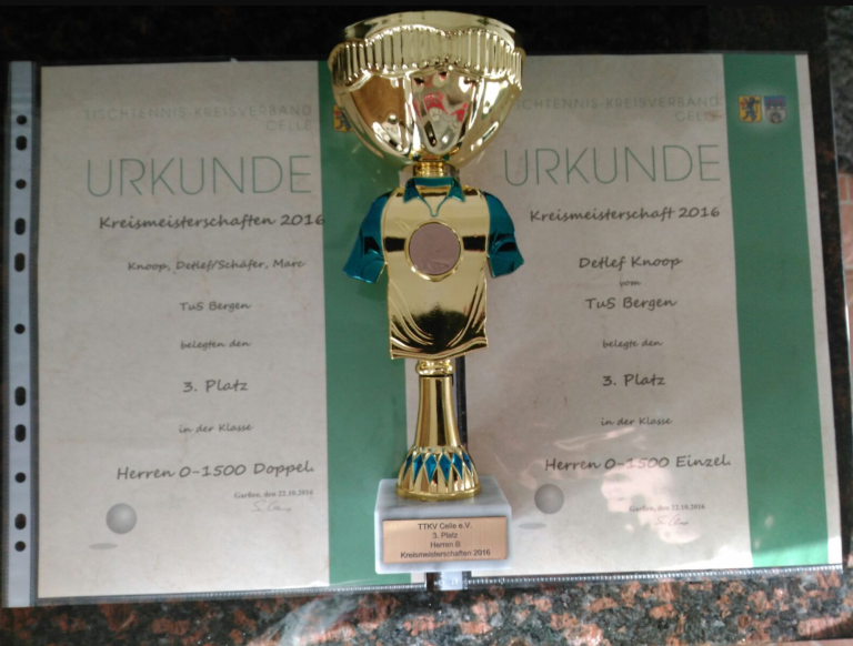 Am vergangenen Wochenende fanden in Garßen die diesjährigen Kreismeisterschaften 2016 statt. Der TuS-Bergen wurde dort durch 3 Spieler vertreten.