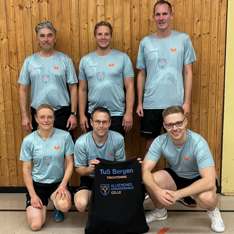 Die Zweite Herrenmannschaft des TuS Bergen belegte mit nur einem Unentschieden und 31:1 Punkten den ersten Platz in der Tischtennis-Kreisliga. Damit steigt die Mannschaft in die Bezirksklasse CE auf.